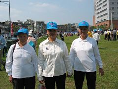 有三位面容和蔼的婆婆来自屏东,他们分别是八十三、六十及七十五岁,虽然早上四点就出发,但是参加声援退党集会的兴奋让她们感到「一点也不累」,脸上还是红光满面、精神奕奕。