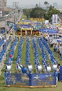 天国乐团今天约有近三百人参加,他们大炎热天气中,排在最前面,精神抖擞,踏着整齐的步伐行进。随着壮盛悠扬的乐声,当乐团雄壮的队伍出现在街头时,道路两旁众多人前来驻足围观,有的观众做出V(胜利)字型,表示赞美与支持。有的观众微笑点头肯定。有观众说:「真让我吃惊,这个乐团成立多久了?竟然有这么高水准演奏,令人不可思议,相信他们都是素质不错的人才办得到的。」