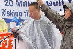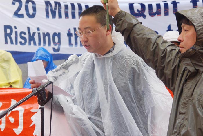 当日风雨交加,但阻挡不了热情的集会民众。来宾民众踊跃发言,与会者共识退党是中共解体的步伐,是民心所向势不可挡,是中华大地新生的期望。