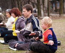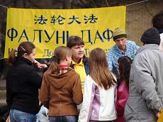 【明慧网二零零七年四月二日】二零零七年三月三十一日,乌克兰法轮功学员在科斯坦丁诺夫斯克(Konstantinovka)市中心公园举办活动,向乌克兰民众介绍了七年多时间里法轮功在中国所遭受的迫害,揭露中共活摘法轮功学员器官牟取暴利的非人行径。一旁同时進行的法轮功功法演示,其祥和美好也吸引了很多有缘人来学功。