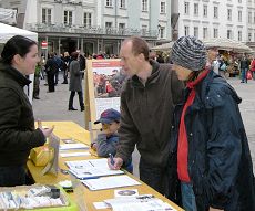 【明慧网二零零七年四月二日】二零零七年三月三十一日,奥地利法轮功学员在萨尔斯堡老城举行信息日,揭露中共对法轮功的残酷迫害和活体摘取法轮功学员器官的暴行。