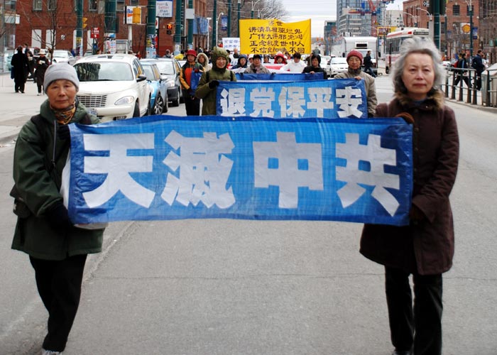 来自青岛的一位中年男子表示,他在中国当过几年兵,做过四年的警察,非常清楚中共的腐败和邪恶。前两天他已在退党服务中心退了党,今天是专程来参加游行的,目的是拍一些照片寄给国内的亲朋好友。