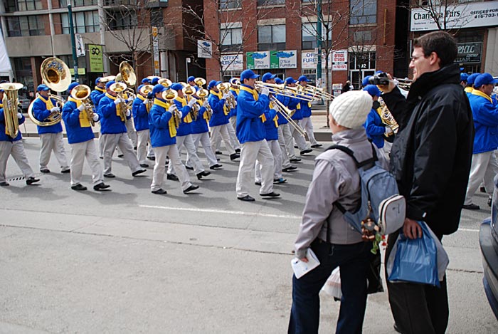 ![]() 声势浩大的退党游行引起路人的关注和兴趣 |