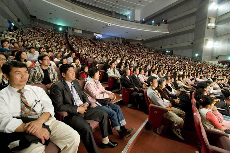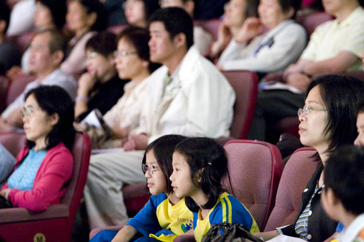【明慧网二零零七年四月二十二日】二零零七年四月二十日黄昏时分,台湾嘉义中正大学大礼堂前两条静静排队等候的人龙,迤逦至校园花树锦簇间,祥和的音乐飘荡在人群中,循礼堂石阶往上望,横楣上高挂的「美国神韵艺术团」鲜丽的看板里,着中国古典服装的女子悠然伸展着水袖。