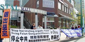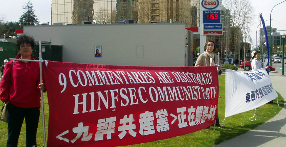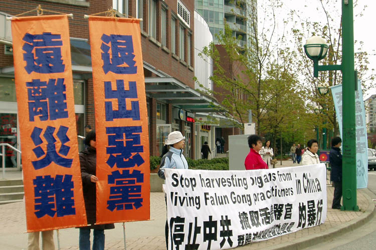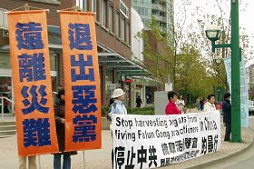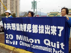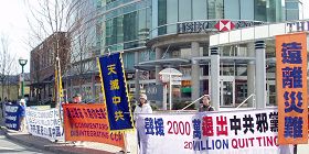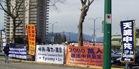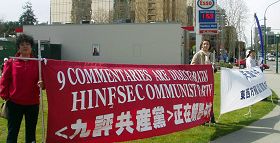 组图为温哥华学员二零零七年四月二十一日在本那比市讲真相、声援三退(退出中共党、团、队)的活动图片。