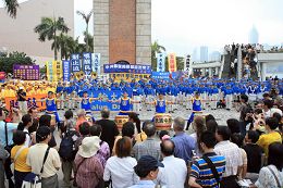 为了纪念一九九九年发生在北京的“四二五”法轮功学员万人和平大上访,二零零七年四月二十一日,日本爱知县的法轮功学员在名古屋市中心的荣广场公园炼功洪法、揭露中共对法轮功学员长达近八年的残酷迫害。