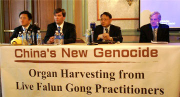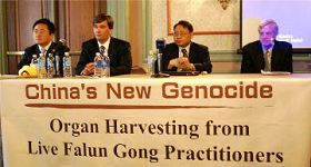 随后,四位被邀请的嘉宾,他们分别是:大卫•乔高先生——原加拿大亚太司司长,“关于指控中共摘取法轮功学员器官的调查报告”的作者之一;李祥春——法轮功学员,因回中国传播法轮功真相而被中共当局非法拘捕关押三年;Torsten Trey博士——德国医生,国际人权组织“医生反器官摘取”的发起人之一和发言人;杨景端博士——精神医学专家,先后上台简短的从各自角度以亲身经历揭露了中共活体摘取法轮功学员器官、残酷迫害法轮功的事实,并回答了媒体记者提问。