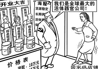 他还向在场的媒体和听众谈到了他在亚洲结识的一个曾经到中国大陆去换肾的病人。病人描述当时的情景,说一个医生拿来一张纸,在那上面挑选符合自己配型的肾脏。那上面列了八个肾,最后一个才配上了。他说那供体肯定是活人,不然怎么会马上配上,马上就做了移植手术。