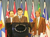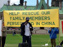 ![]() 十五个受害的加拿大家庭中的四位代表在新闻发布会上发言,讲述家人受中共迫害的遭遇 |