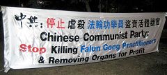 二零零七年四月二十五日晚,美国旧金山法轮功学员在中领馆前举行集会和烛光纪念,回顾法轮功八年来走过的、艰苦卓绝的、和平理性反迫害之路,谴责中共活摘法轮功学员器官、灭绝人性的迫害,悼念成千上万在迫害中失去生命的同修;并呼吁全社会一起维护正义和良知,立即结束中共对法轮功的迫害。