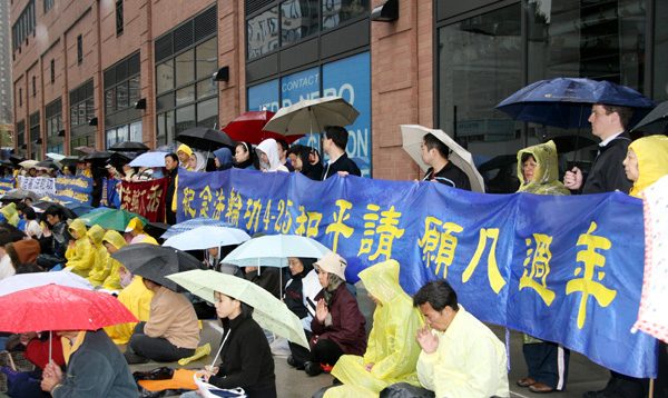 大纽约地区法轮功学员纽约中领馆前纪念“四•二五”,抗议迫害