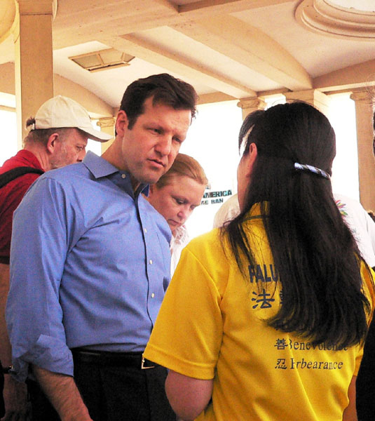 ![]() 国会议员Carnahan先生听法轮功学员讲真相 |