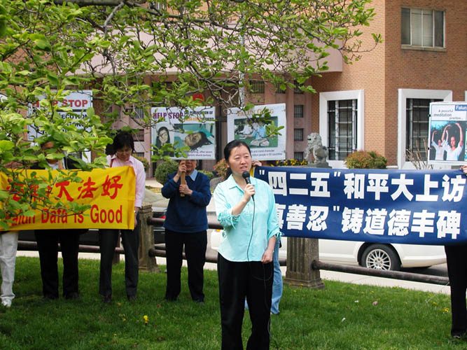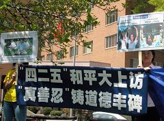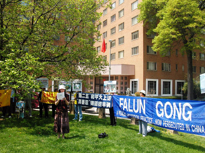 ![]() 美国首都华盛顿地区法轮功学员中使馆前集会,纪念“四•二五” |