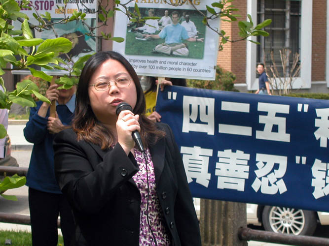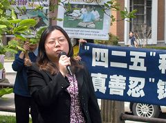 弗吉利亚州居民石伟女士在集会上讲述了她看到的在这几年里中国民众了解了法轮功真相之后的变化。“刚开始很多人对法轮功真相都不了解,在中国大陆,他们唯一的消息来源就是中共,所有媒体都是中共控制的,老百姓都不知道法轮功真相,当他们知道了天安门自焚真相后,什么都明白了。有的中国网友在明白了真相后,都告诉自己的亲朋好友,希望他们也都明白真相。有的中国人家里接到电话,办公室收到真相传真,有的公安局长在明白真相后退了党,还有的单位集体退党,我看到了人心的变化。”