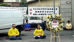 洛杉矶学员中领馆前烛光纪念“四•二五”八周年 (图)