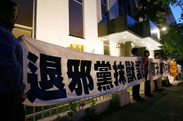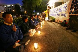 ![]() 法轮功学员在中领馆前的抗议活动,回顾走过的和平抗争之路,谴责中共灭绝人性的迫害 |