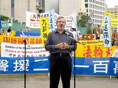 国家民事委员会(National Civic Council) 代表弗兰斯(Ken Francis)表示,他很高兴能代表国家民事委员会来参加声援退党的集会,他呼吁中共立即停止虐杀及对人权迫害的行为,让中国人民拥有和平。他说,两千一百万人退党意味着中共政权正在解体之中;而对于法轮功所遭受的迫害,弗兰斯表示他们非常的支持法轮功,他相信迫害一定会结束,人权一定会战胜邪恶。同时,他也指出,中国现在仍信仰的马克思主义早已无人相信,那套主义利用人民,只顾自己的私利。他祝福关心人权的与会者要持续努力直到中共垮台。
