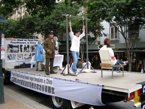 真人模拟的反酷刑展,揭露中共迫害法轮功暴行