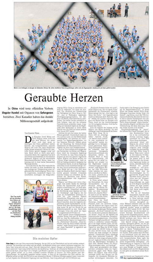 在中国,人们令人吃惊的几乎认识不到这件事情的残酷性。到七月份为止,中国医院在他们的网页上公开宣传,器官移植等待时间短。一所中国国际器官移植中心的网站上写着:我们大概只需要一个星期就可以找到一位合适的肾脏捐献者,最长的等待时间是一个月。