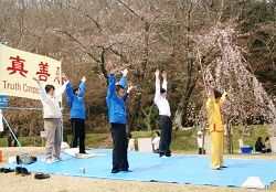 爱知县丰田市因有丰田汽车公司而驰名于世,有很多在丰田汽车公司工作的外国人居住在此。在水源樱花节上,除了当地的市民们外,学员们还碰到了很多外国人:美国人、泰国人、越南人,马来西亚人……,其中也有在丰田生活的中国留学生、工作人员和台湾同胞。学员热情的向他们打招呼,并给他们讲真相,告诉中国同胞《九评共产党》和目前大陆以及海外华人退出中共及相关组织的已经突破了两千万人。