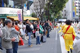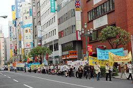 集会后,声援者穿越游客聚集的池袋及新宿区举行了约两小时的游行。游行队伍从池袋出发穿过市区至高田马场,队伍中有腰鼓队开道,队伍后面仙女压阵,引来沿途大量市民驻足观望,部份大陆游客更对公开谴责中共感到高兴,另有了解退党重要性后当场表示退党的游客。