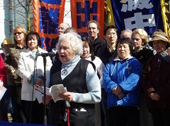 所有的发言者都强烈谴责中共对人民的迫害,尤其是对法轮功的迫害。Fred Muzin说,几年来的实践证明就是法轮功告诉我们的都是真的。“我代表四万两千医疗工会雇员支持你们的抗争,你们的抗争就是我们的抗争。”
