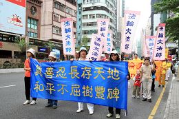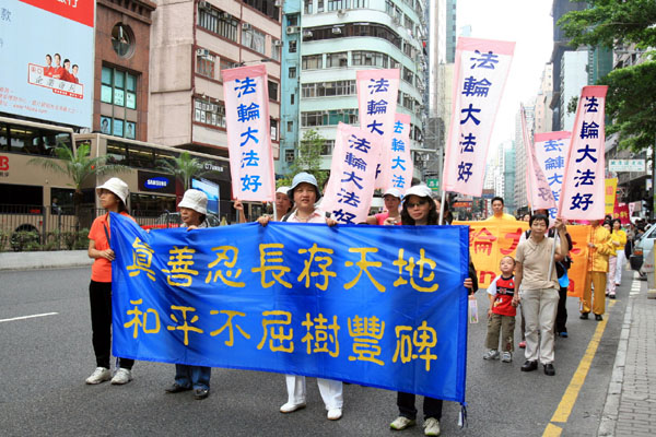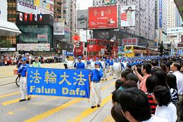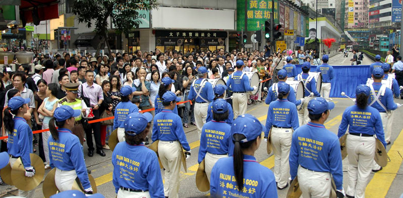 台湾法轮功学员近二百人组的天国乐团应邀参加香港二千万退党(退出中国共产党、退出共青团和退出少先队)大游行活动