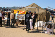在捷克法轮大法学会的帐篷前,学员模拟演示了中共用以迫害法轮功的酷刑。一位女士非常认真的观看酷刑演示,这场景深深触动了她。她的表情很痛苦,对学员说,“在(捷克斯洛伐克)共产党时期我也被关进监狱,但没有承受这种折磨。”