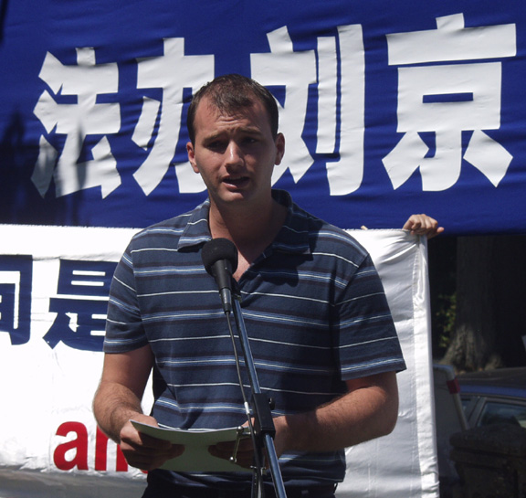 杰瑞德在声援中国人退出中共邪党的集会上发言