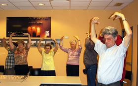 考虑到一些有视觉障碍的盲人,法轮功学员卡门(Kamen)教功时,就尽量用详尽的语言描述动作,对动作不准确的人再个别纠正。法轮功学员教的认真,人们学的认真,常常问是不是这样?法轮功学员总是耐心的帮助他们。学员每演示一套新的动作时,人们总要报以热烈的掌声。当法轮功学员询问他们累不累,要不要继续时,他们一致回答要继续。后来得知其中一位穿浅粉衣服的老人已经有一百岁了。