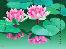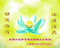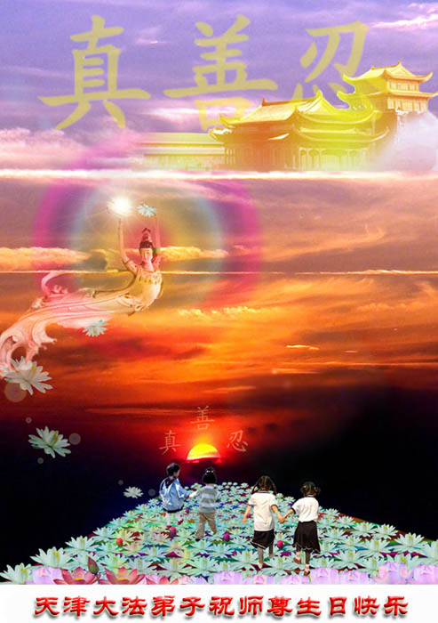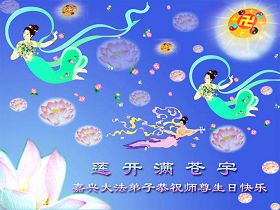 在您的慈悲呵护下,我们走过了一个又一个年头,新弟子也慢慢的成长为老弟子,在这个整体里我们每个人也都渐渐的越来越成熟、越来越理智清醒。请师尊放心,在以后的日子里,我们会更加精進,不负师尊对我们的期望和大法弟子的使命。谨让我们以我们最纯净的心献给师尊。