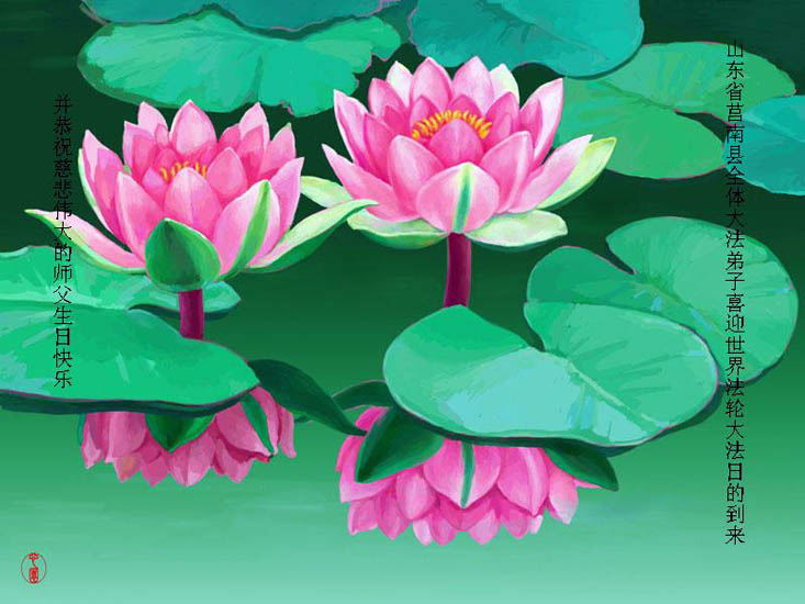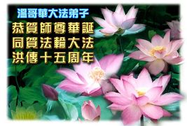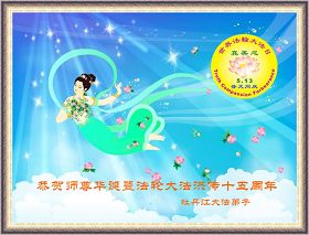 也借此机会向全世界的同修们问声好。谢谢你们的付出,我们的成长,都深深的受益于同修们在明慧网上的共同交流。让我们共同庆祝这伟大殊胜的日子吧。