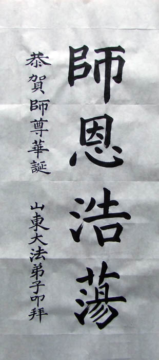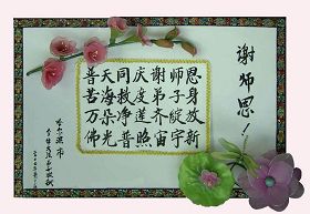 希望师尊在这个普天同庆的节日后,能多一份欣慰,少一份操劳!师尊!您辛苦了!弟子会精進精進,决不辜负您的慈悲苦度!