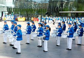 以下图片拍摄于二零零七年四月二十日荷兰海牙花车游行。欧洲天国乐团在荷兰期间受到人们的热烈欢迎。荷兰人民纯朴善良,他们有生以来第一次见到法轮功的天国乐团,他们欢呼雀跃、流泪并且拍照,留下这珍贵的记忆。