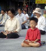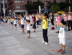 课程安排法轮功炼功活动,小朋友很认真的炼着
