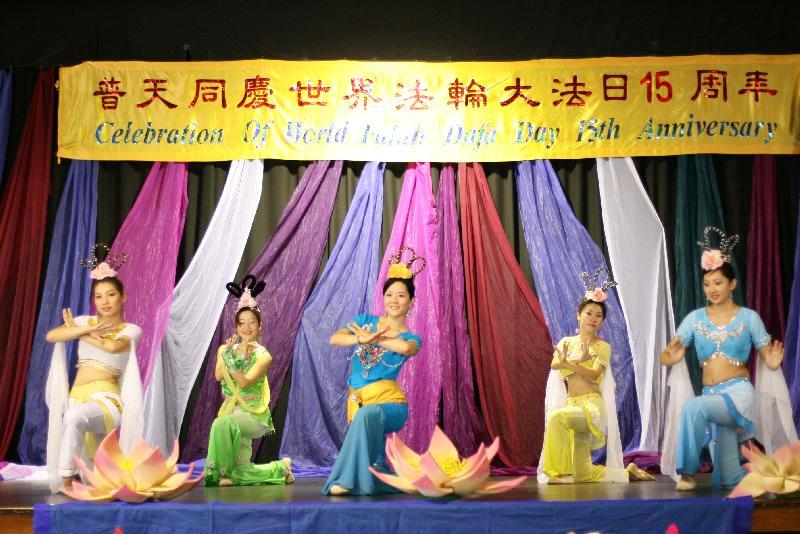 【明慧网二零零七年五月十三日】(明慧记者陈心宁采访报导)每年的五月十三日为世界法轮大法日。今年,澳洲昆士兰的法轮功学员们特于十二日上午,在布里斯本南区一礼堂内举行法轮大法洪传十五周年的庆典活动。现场嘉宾和观众云集,活动包括法轮功功法介绍、修炼心得分享、舞蹈表演、乐器演奏、歌曲演唱、“真善忍美术展”等。