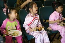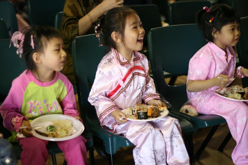 在压轴的舞狮表演结束后,来宾们开始享用学员们准备的精美食品。用餐期间,人们向学员们更进一步的了解法轮功。庆典活动于下午三点圆满落幕。