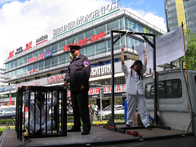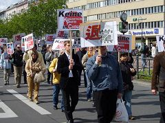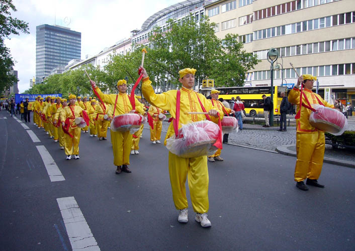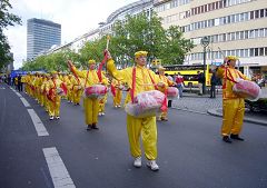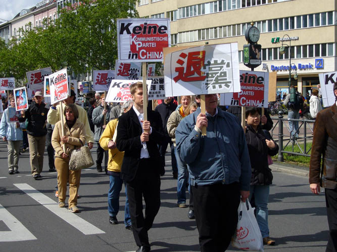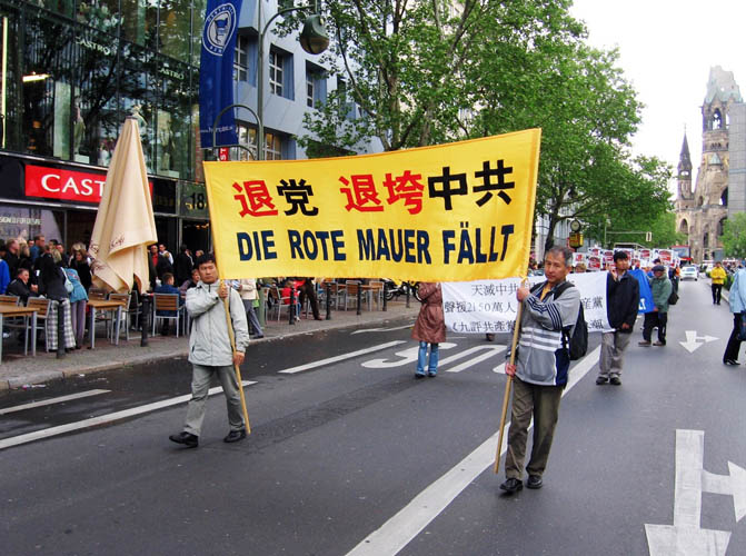 【明慧网二零零七年五月十三日】(明慧记者吴思静柏林报道)二零零七年五月十二日,德国当地时间下午两点半,十七年前曾见证过东德共产党解体的德国人在柏林市中心最繁华的购物街——选帝侯大街上见证了中共解体过程中的一个片断:三百多名法轮功学员在举行游行,庆祝并声援两千多万中国人退出中共党、团、队。有德国路人表示希望共产党在世界上不复存在。还有中国人看到游行集会的活动后,马上表示要退出曾加入的中共附属组织。