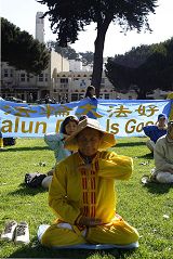 刚刚从广东台山来旧金山的李女士表示,她看了法轮功学员的活动,觉的很祥和,她问在旧金山哪里有炼法轮功的。