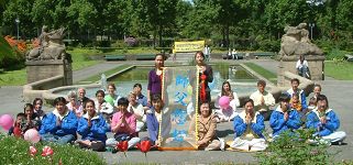 二零零七年五月十二日瑞士法轮大法弟子在首都伯尔尼的玫瑰园举行庆祝活动。