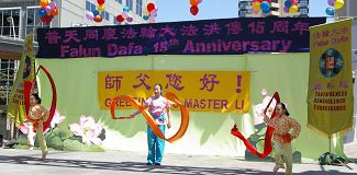 二零零七年五月十三日,第八届“世界法轮大法日”,又是大法洪传于世十五周年纪念日,法轮功学员在纽约曼哈顿中心的联合广场举行大型庆祝活动,以多姿多彩的传统中华歌舞为师尊贺寿,歌颂大法恩德,和纽约民众一起欢庆大法开传的伟大纪念日。