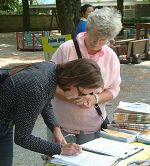 一位女士仔细观看了学员摆出的大法洪传世界的展板,随后向学员询问,当地哪里可以学炼法轮功。当得知就在玫瑰园时,她非常高兴的记下了炼功的时间。她表示,自己常常会在工作上、生活中感到紧张不安,所以一直都在寻找解决的办法。今天看到法轮功,她觉的非常好,一定会到炼功点来学炼功法。