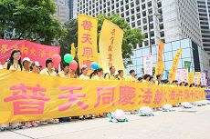 香港法轮佛学会发言人简鸿章说:“五月十三日是法轮功在中国大陆被中共迫害之后不久的二零零零年被正式订为世界法轮大法日,至今八届的大法日都是在中共的迫害中度过。随着我们学员努力不懈的讲真相及中共邪党在退党潮中解体,我们希望更多民众能够了解真相,选择美好的未来,并期待在不久的将来,在迫害结束后能在中国大陆庆祝法轮大法日。”