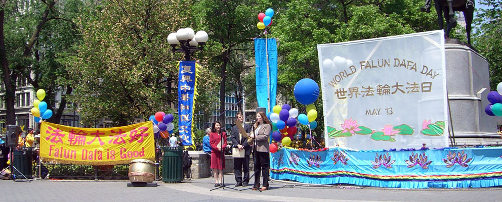 截至五月十三日,共有二十三位纽约各级议员给法轮功学员颁发褒奖,祝贺第八届“世界法轮大法日”,高度认同法轮大法的“真善忍”准则以及法轮大法给纽约人及全世界带来的精神平和和身体的健康,同时高度赞扬法轮功学员面对残酷的迫害表现出的坚定平和、大善大忍,谴责中共集团惨无人道的迫害。州参议员Reverent Ruben Diaz的代表Ann Noonan女士来到联合广场宣读了褒奖。