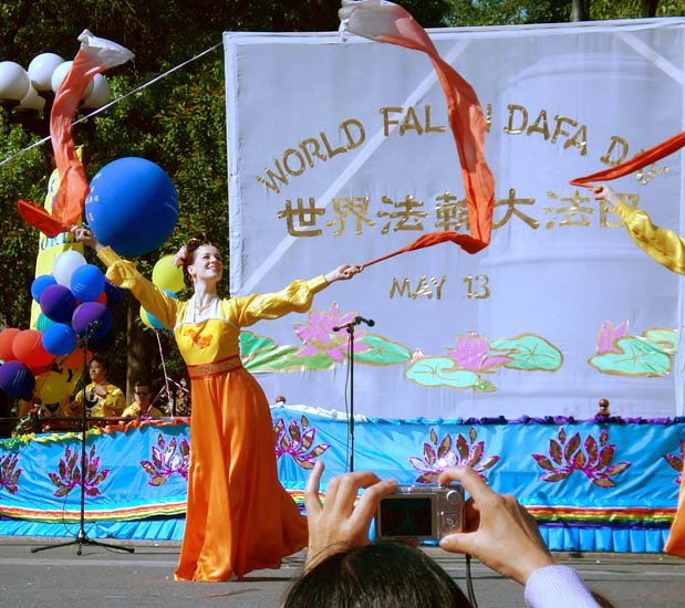 在庆祝活动现场,法轮功学员展出多幅修炼法轮功的艺术家创作的美术作品,很多过往行人驻足观看。同时向纽约人派发真相报纸,很多人都愿意接受。纽约居民德麓斯(Deluce)说,曾经听说过中国的法轮功修炼和迫害情况,从这些画作中才真切感到迫害的严重。活体摘取器官这种惨剧实在令人难以接受,这些场景可能会出现在将来类似《辛德勒名单》的影片中。