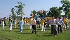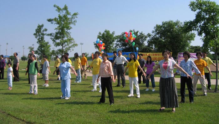 达拉斯法轮功学员集体炼功庆祝世界法轮大法日