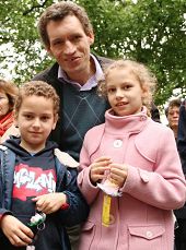 ![]() 马克先生和他的两个孩子丹尼尔和露西都喜欢法轮功学员的表演 |