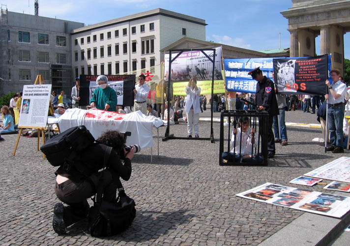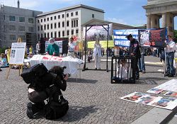 ![]() 记者对揭露中共迫害的反酷刑展拍照 |