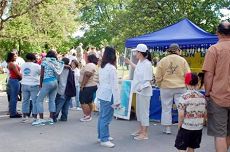 学员在向游人介绍法轮功的美好的同时,也向他们讲述了在中国所发生的惨烈迫害,和中共活摘法轮功学员器官的暴行。震惊了的人们纷纷在请愿信上签名表达对法轮功学员的支持。