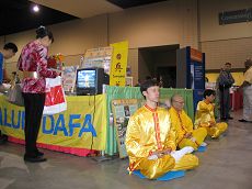 今年学员们不仅象往年一样租设了洪法讲真相展位,同时还再次应邀上台表演了腰鼓节目。很多中国同胞主动到展位向法轮功学员打招呼,并认真倾听真相。从二零零二年第一次参加亚洲节时只能摆放一张洪法海报,到通过不断讲真相从而得以摆设洪法展位;从法轮功学员只作为当地中国社区的一部份登台表演节目,到被邀请提供节目并参加大会活动的筹办工作,无处不体现人们对法轮大法越来越多的了解和喜爱。